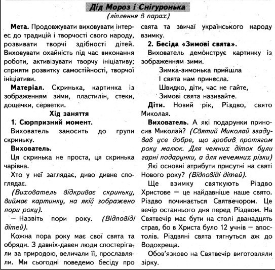 – Діти, а хто до нас приходив на свято Нового року (Дід Мороз і Снігуронька). Так, ми з вами зліпимо Діда Мороза та Снігуроньку.