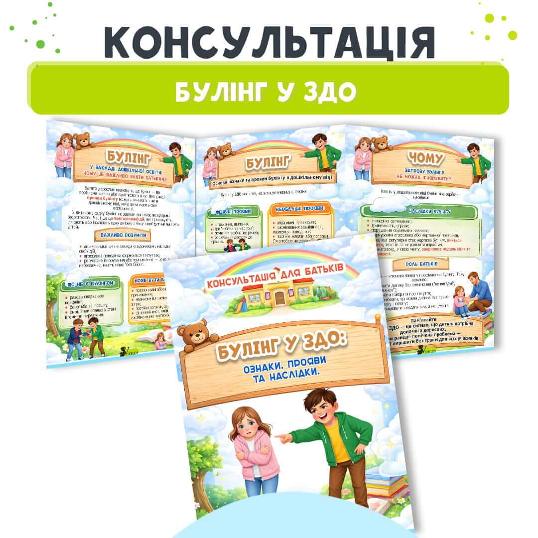 Консультація для батьків «Булінг у ЗДО: ознаки, прояви та наслідки» — наочний інформаційний матеріал для роботи з батьками в закладі дошкільної освіти 👨👩👧