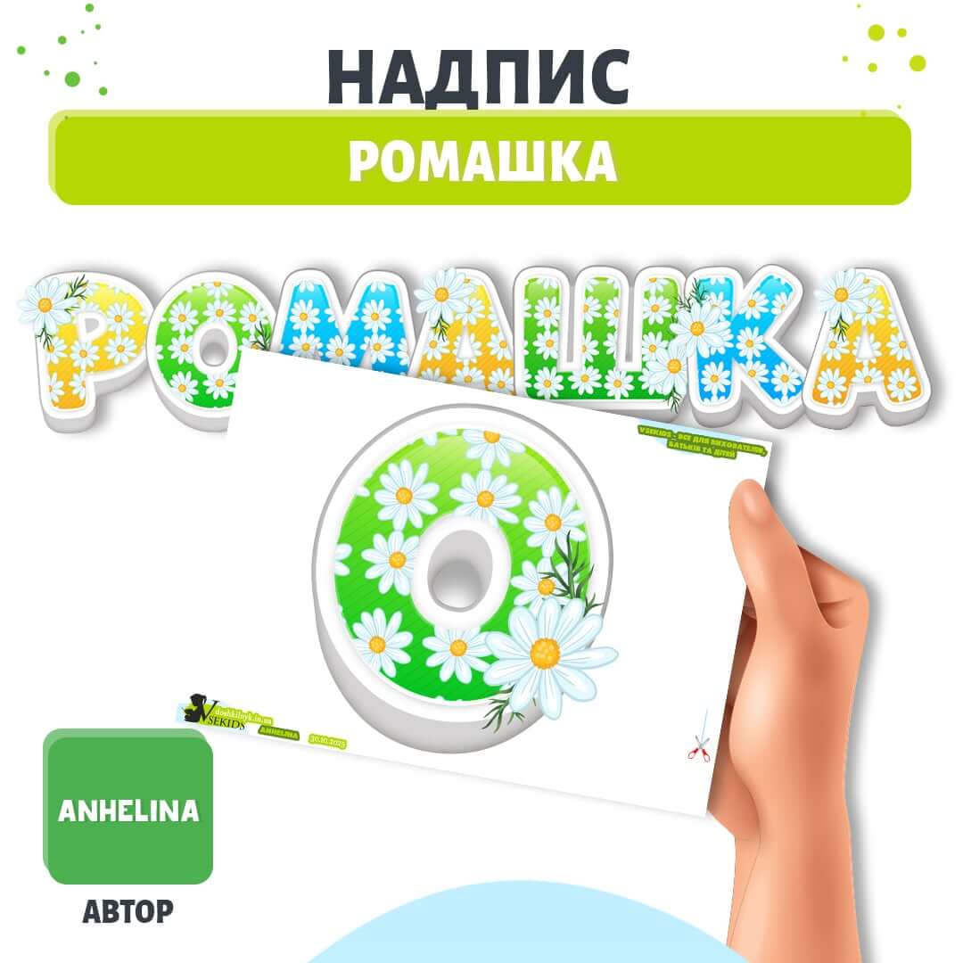 lНапис-розтяжка «РОМАШКА» по буквах. Кожна літера – це окремий елемент на аркуші А4.