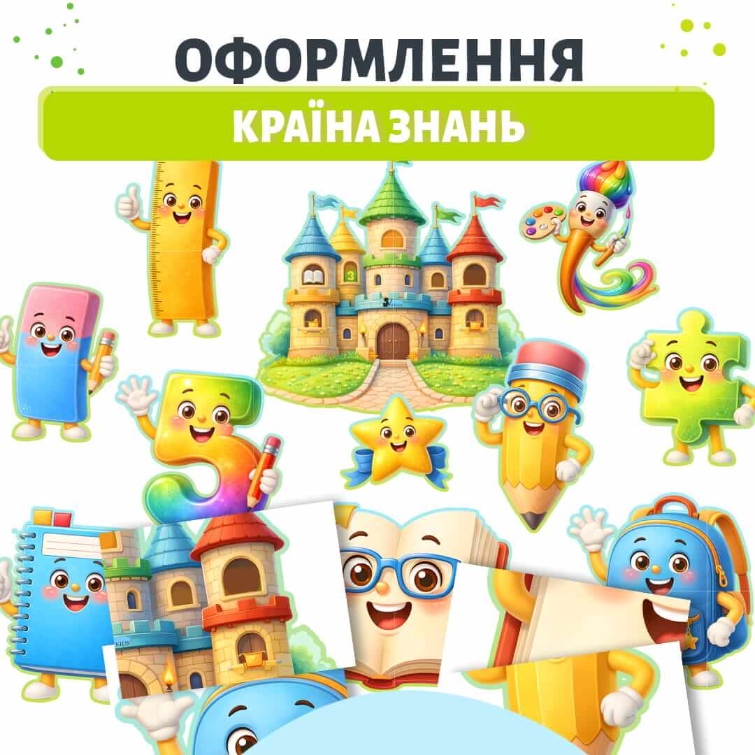 Матеріал допомагає оформити стіну чи тематичну дошку, створюючи атмосферу зацікавленості, мотивації до навчання та позитивного ставлення до занять.