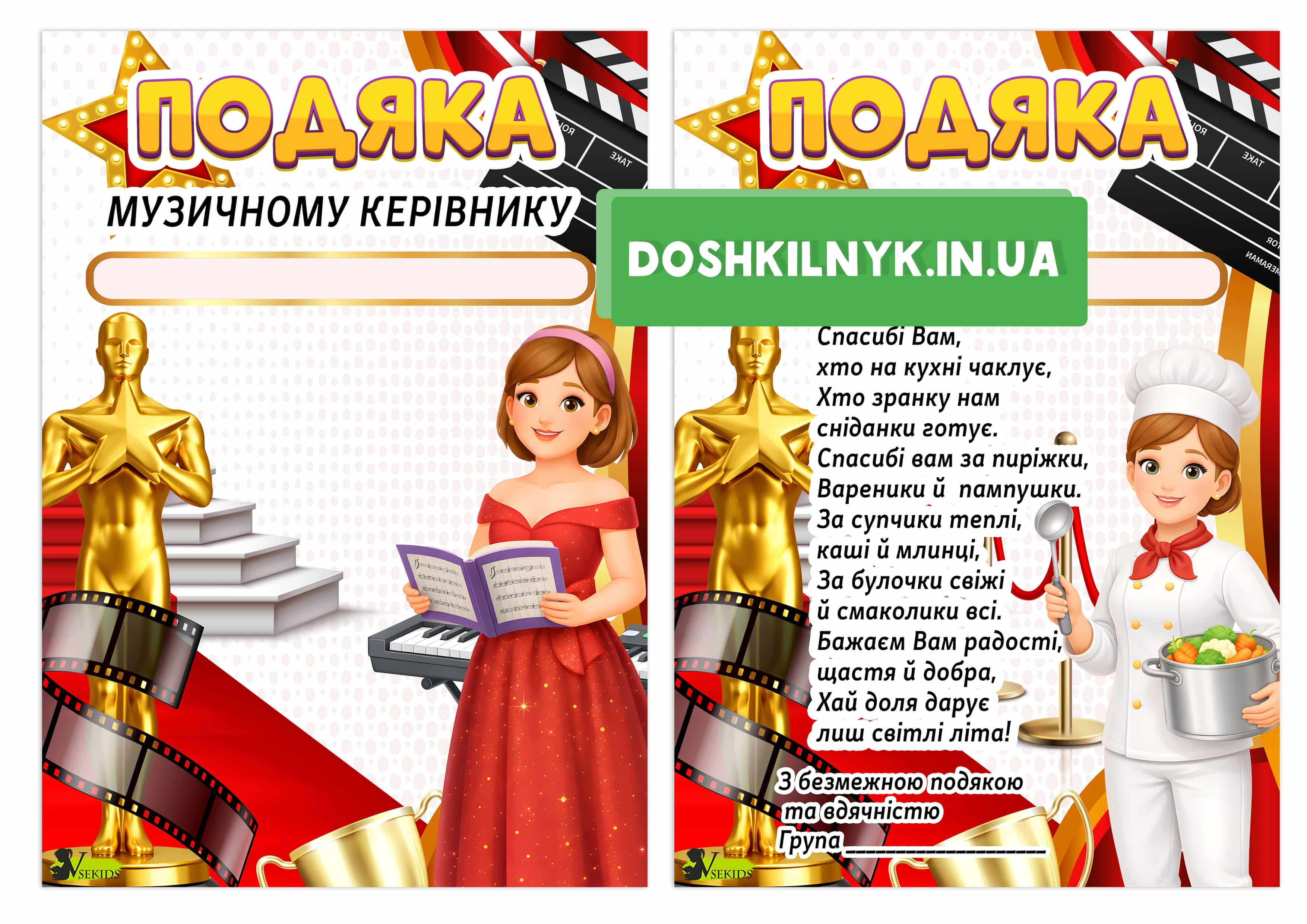 Матеріал підходить для випускного у ЗДО. Яскравий дизайн у стилі Оскар робить нагородження емоційним і пам’ятним для всього колективу.