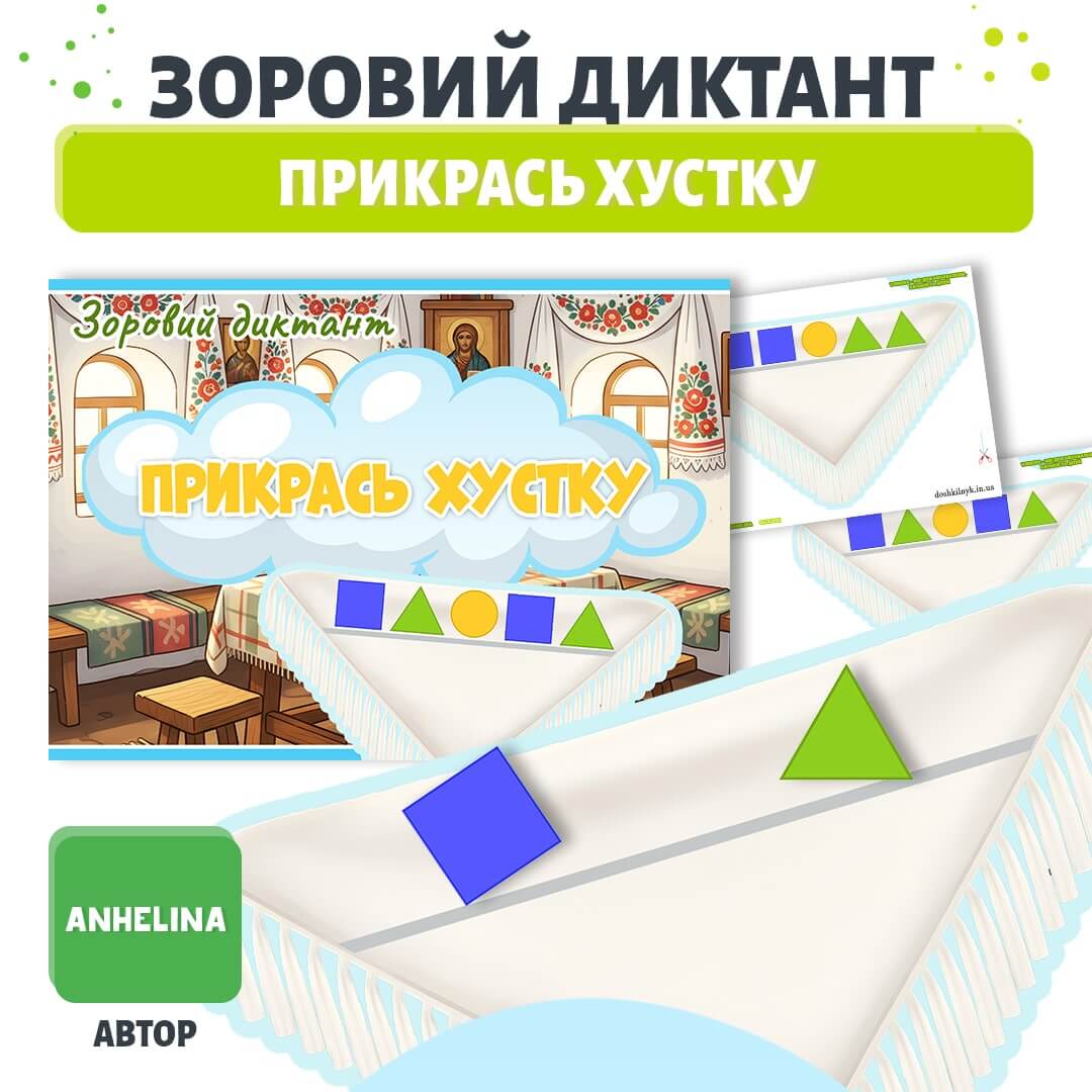 Створіть для дітей цікаве завдання, яке тренує пам’ять, уважність і знайомить зі світом вишивки. «Прикрась хустку» — це зоровий диктант, у якому дитина спостерігає за візерунком, а потім має відтворити його на власному шаблоні хустки за допомогою геометричних фігур. Підійде для занять з логіко-математичного розвитку, до Дня української хустки.
