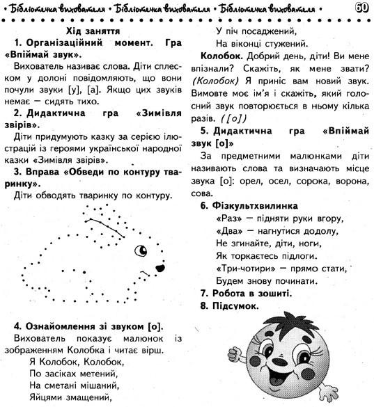 Матеріал: малюнок із зображенням колобка, фішки для позначення звуків, ілюстрації до народної казки «Зимівля звурів»